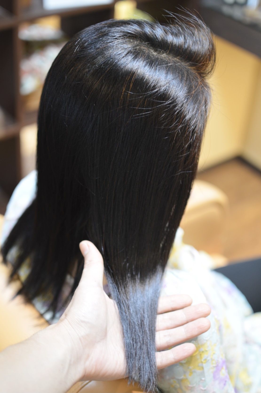 あきらかな人工的な髪のツヤ感に