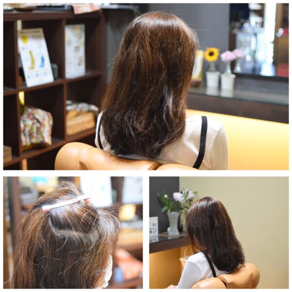 染めあがりの色をチェックしてもらうと