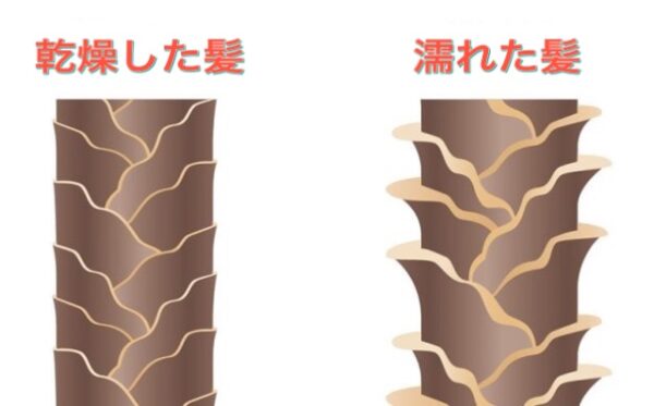 表面にある”うろこ状”のキューティクルが開いて