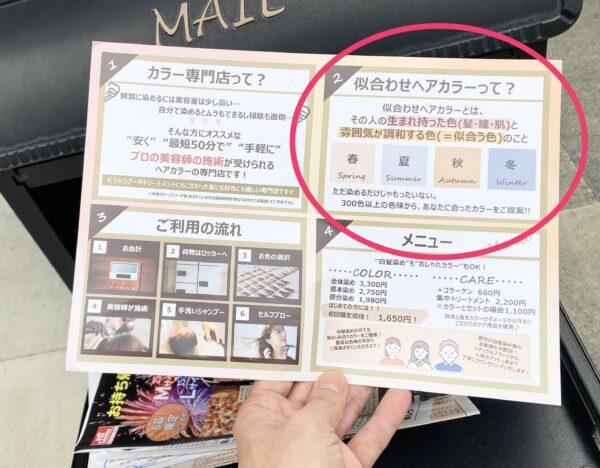 近所のカラー専門店さんのチラシが入ってた