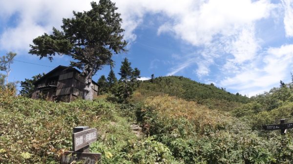 山小屋前にある