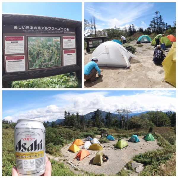 テント場で寝床を設営して